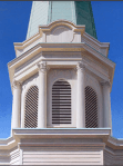 I could offer several approaches. I could “zoom in” on a signature architectural detail—say, the central tower—and allow it to speak for the whole. I love Edward Rice’s photo- realistic, close-up portraits of Greenville landmarks. Each painting is a jewel set in a sensitively cropped frame that invites the viewer to identify or imagine the complete structure. But making a dimensional piece from a detail necessitates literally cutting away the rest of the house. It might be an interesting painting. But it’s not a complete portrait.