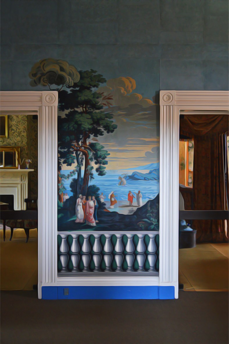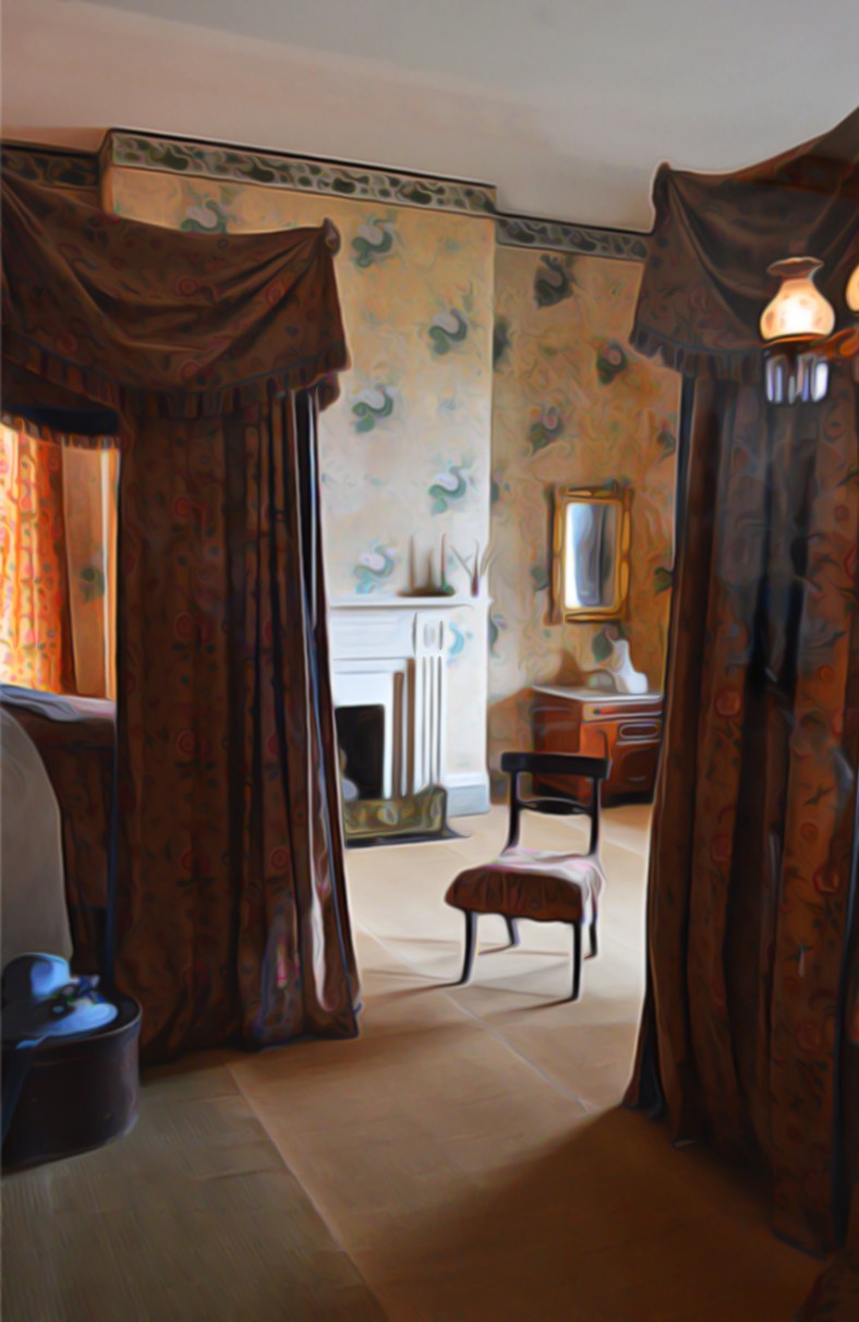 Not too far from ticky-tacky honky-tonky Broadway in downtown Nashville is The Hermitage. This nearly 1200 acre National Park was once Andrew Jackson’s home. The day we visited on our recent trip was cool, overcast and kinda gloomy. The main house was undergoing some renovations, so we got a break on the entry fee as consolation. But I thought all the draped plastic sheeting and blue painter’s tape made the place even more interesting. That, combined with the soft natural light seeping in from the downcast day outside gave the place a kind of eerie, pensive mood. I took photos (of course) and, although the results were nice visual records of a museumy place having a facelift on a gray day, they didn’t quite express the mood. The painter in me imagined these scenes rendered more contemplatively through paint on canvas. I played around in Photoshop to give them a more painterly effect. Not quite paintings, but you get the picture.