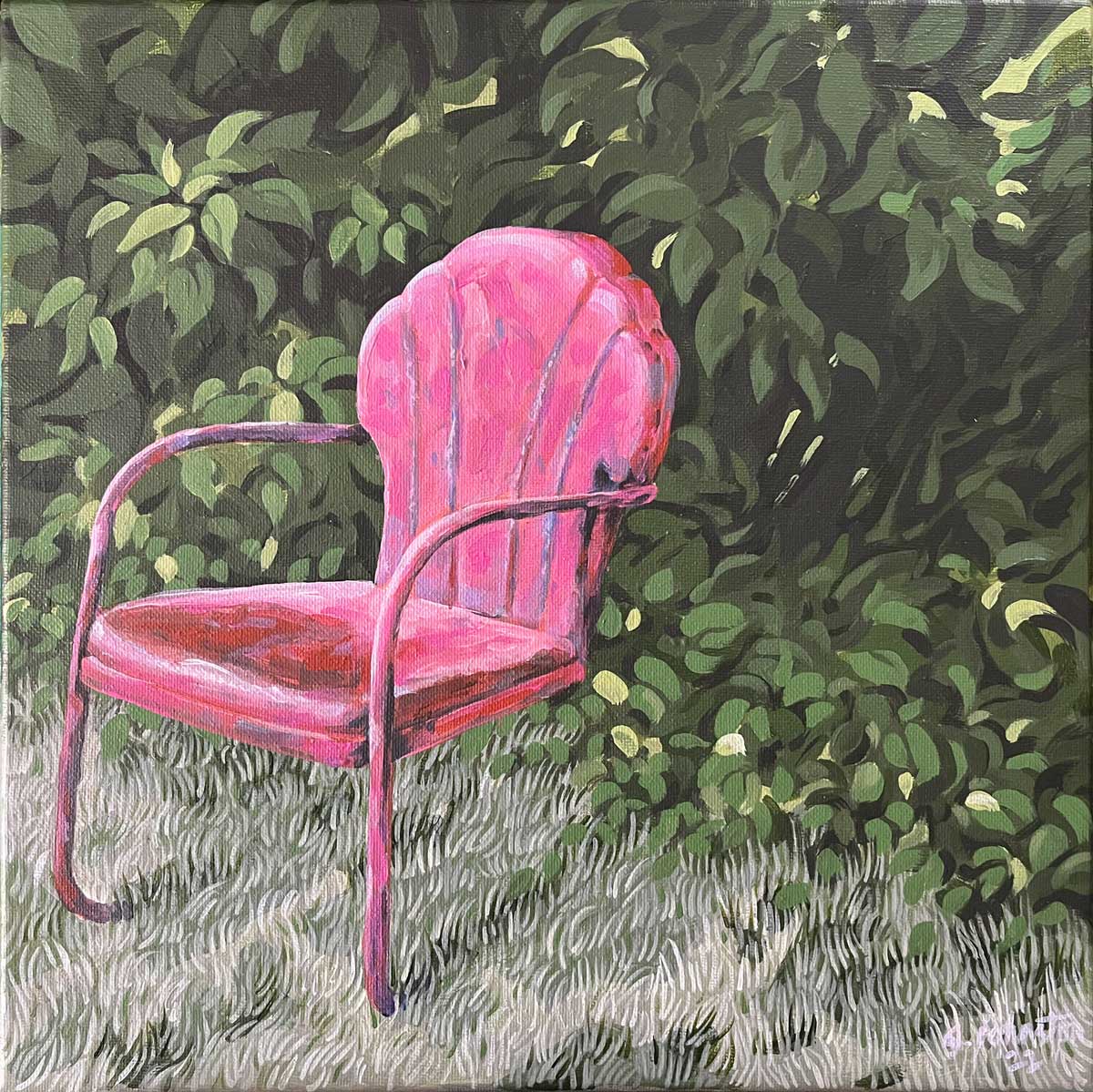 This entry was posted in Paintings and tagged acrylic, acrylic painting, lawn furniture, metal chair, representational painting. Bookmark the permalink.