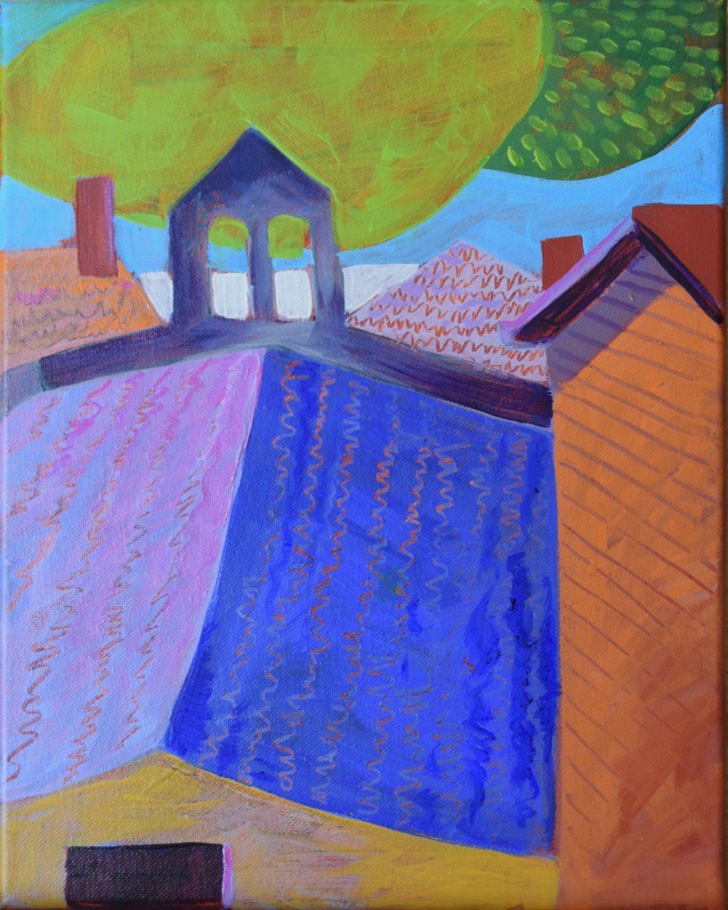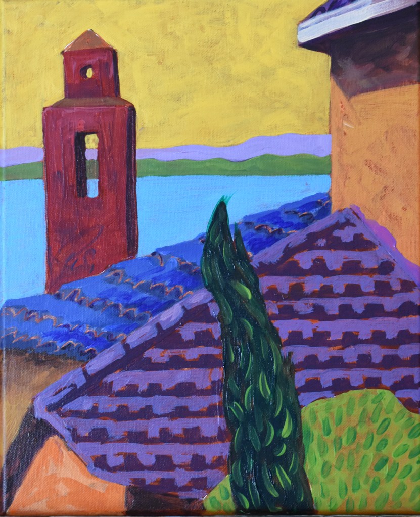 Here’s a couple little paintings (11″ x 14″) inspired by photos and sketches I did in Italy a few years ago. Colors, shapes, and design have been abstracted and exaggerated to produce vibrant compositions. (Note the modifications on Passignano Alt 1 with a more realistic—but still abstracted—version previously posted.)