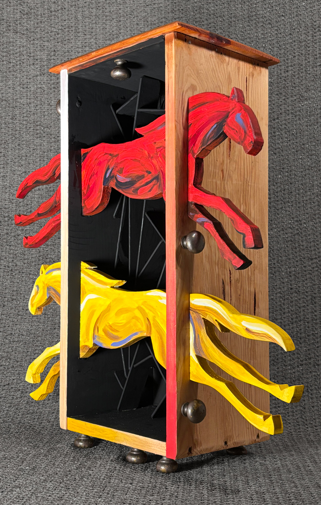In this case—a piece I call “Horse Dream”—I decided to tell a story about our horses. They’re kinda in and out of our day-to-day. Feed them grain twice a day. Water them. Groom them. Talk to them. Tend the pasture. Occasionally, go for a ride through the woods on them. All the while tending to our day-to-day as if they were passing through the little box of our lives.