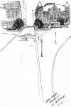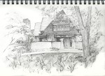 - Pencil sketch of the west face of Frank Lloyd Wright’s Oak Park, IL home and studio.